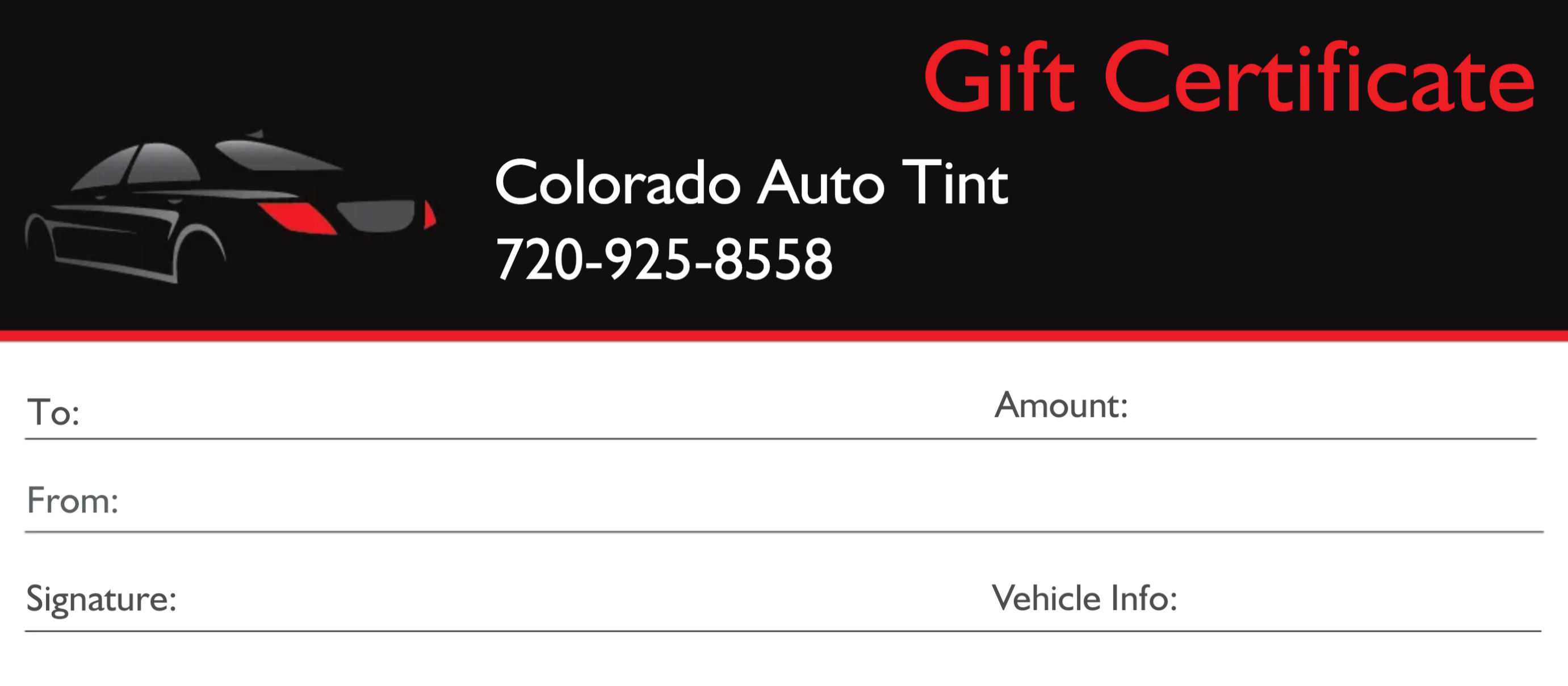 At Colorado Auto Tint, we understand the joy of giving the perfect gift. That’s why we are excited to announce that our gift certificates are available all year round! Surprise your loved ones with the gift of enhanced driving comfort, improved aesthetics, and increased privacy for their vehicles.